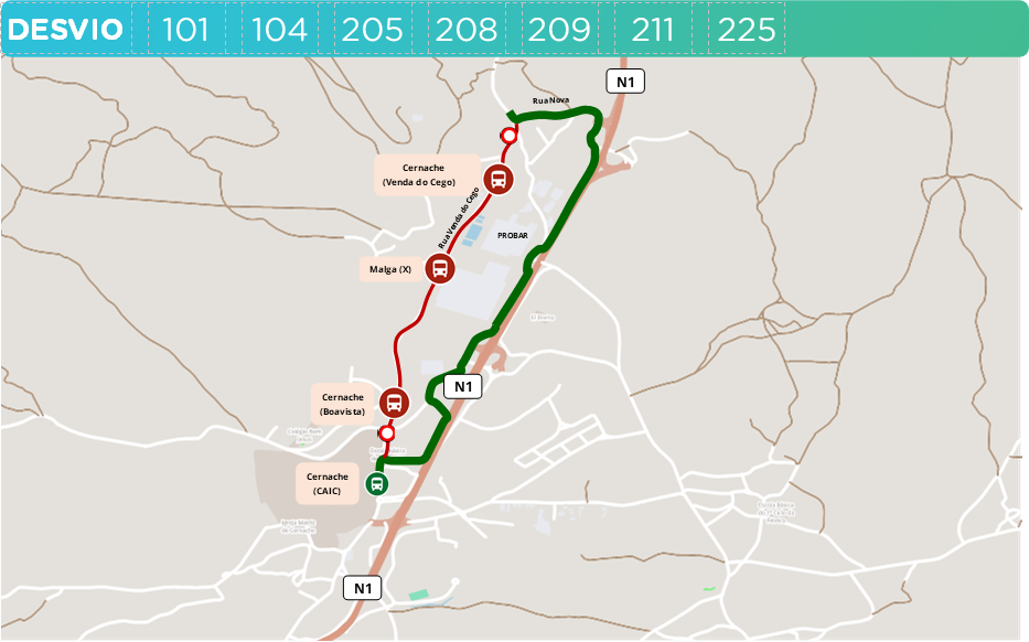 Devido a falta de estabilidade na Rua da Venda do Cego – Cernache (Coimbra) linhas as 101, 104, 205, 208, 209, 211 e 225 vão efetuar percurso alternativo pela Nacional 1.